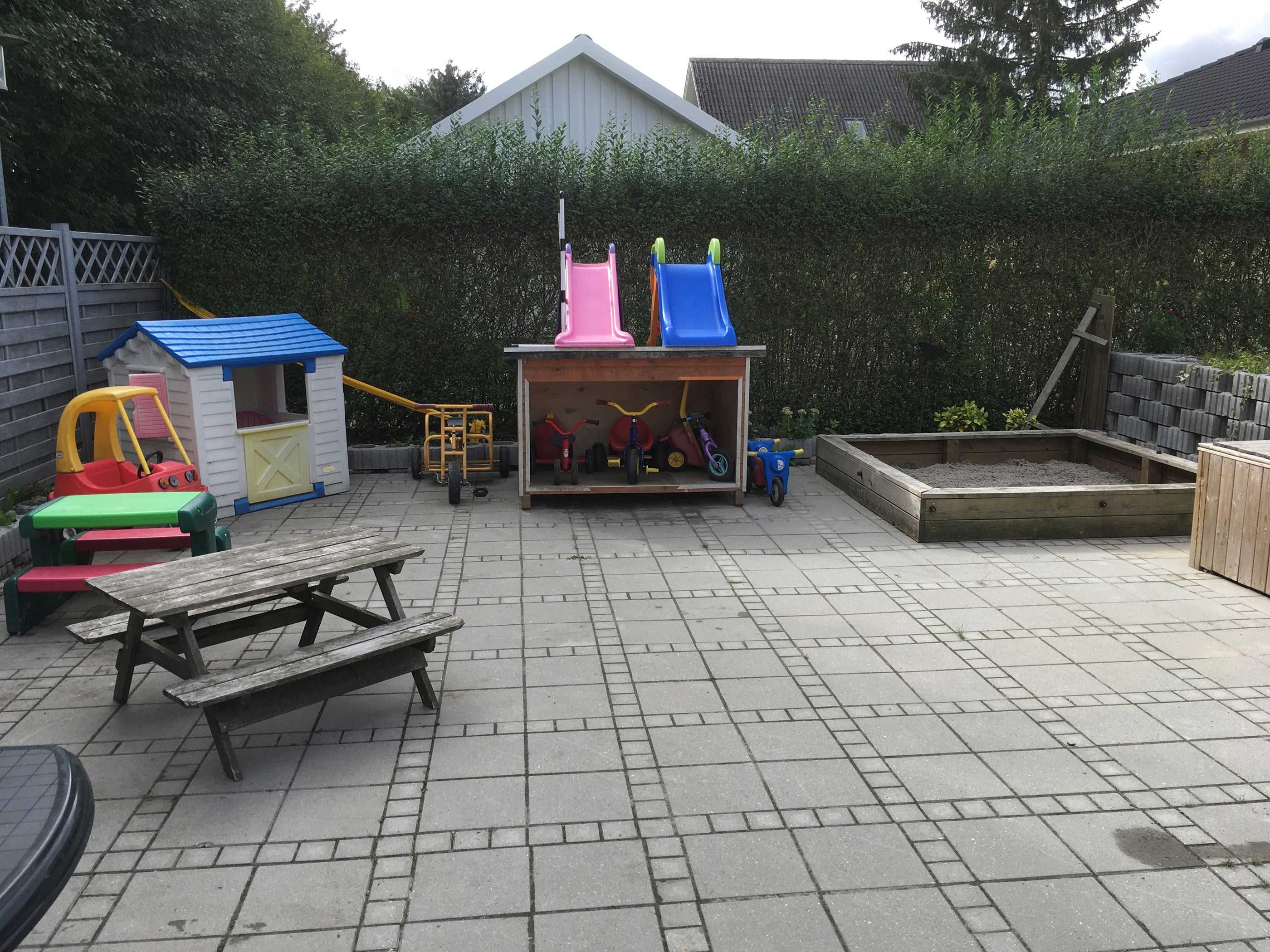 Det hvide hus lige ved siden af Herlufmaglehallen skaber rammerne for min dagpleje. Jeg er fra 1973 og er gift med Flemming, har voksne børn og børnebørn.