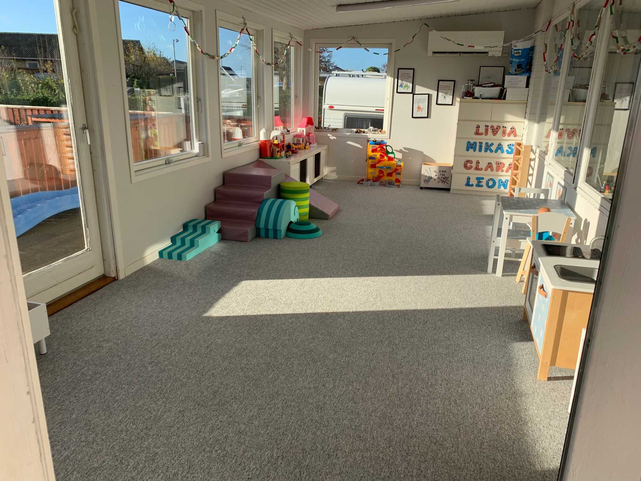 På dag 3 prøver vi, at mor/far går bare et kvarters tid. Herefter går jeg meget op i at vurdere, hvad barnet har brug for. Nogle børn har brug for at være her meget kort tid alene over en længere periode og andre børn kan være klar til at sove her for første gang efter 5 dage. Så en indkøring er altid på børnenes præmisser. De skal være trygge og klar, før de kan klare en hel dag alene uden mor eller far. Det er meget vigtigt, at I som forældre viser barnet, at det er super-okay at komme i dagpleje. Børnene kan godt mærke, hvis vi som forældre er nervøse og det smitter af på dem.