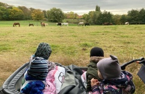 Naturen er fantastisk i vores nærmiljø, og vi går derfor ofte lange ture i skoven og på forskellige legepladser.