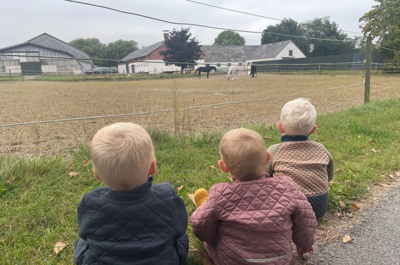 Vi er placeret i vest – her har vi mange muligheder for børnene, vi er tæt på Baunehøj rideskole samt skov og by.